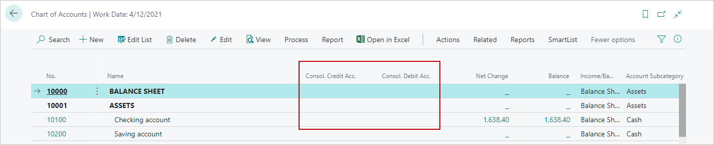 When reviewing the Chart of accounts for each business unit, personalize the list so that the consolidation accounts are visible. For information on how to personalize a page, see To start personalizing a page through the Personalizing banner