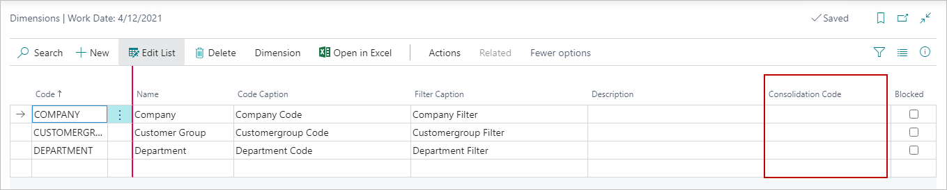 When reviewing the Dimension page for each business unit, personalize the list so that the consolidation code is visible. For information on how to personalize a page, see To start personalizing a page through the Personalizing banner