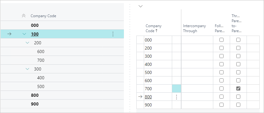 Intercompany Through Select the top entity that is involved in the intercompany transactions.